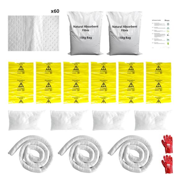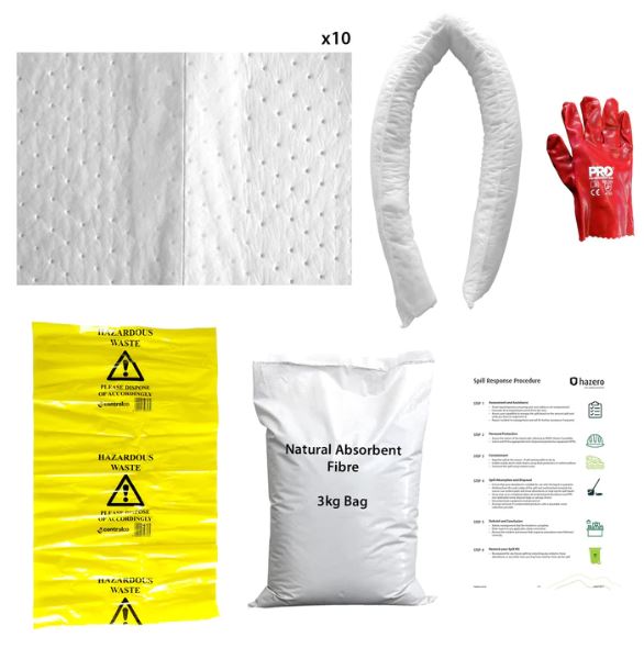 This specialist marine clean up kit includes absorbents designed to selectively separate oil-based products from water, allowing them to be safely disposed of in the hazardous waste bags provided.